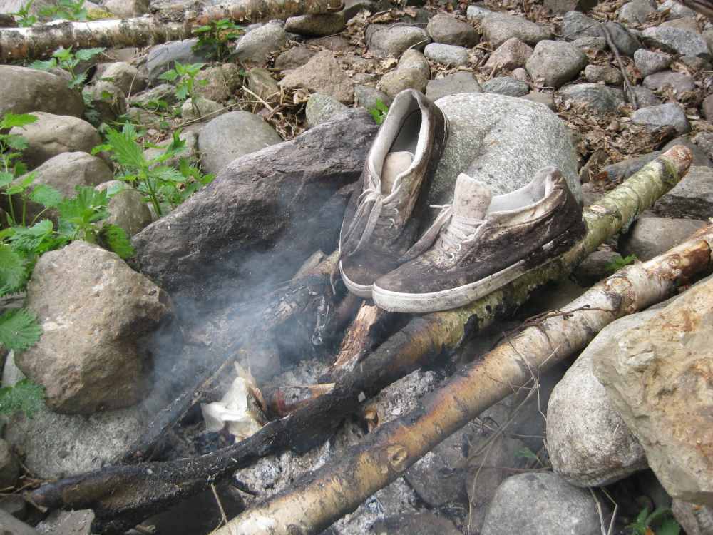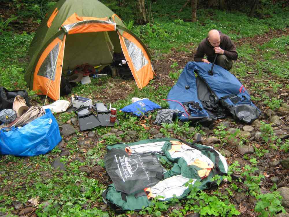 wurde das ganze Gerödel ans Ufer geschleppt, die Isomatten und Schlafsäcke