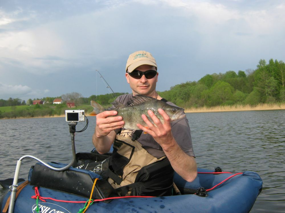 So, gegen 8:00 Uhr waren wir wieder in unserem Lager angekommen. Sofort und ohne Pause zogen wir uns unsere Watsachen an, sprangen ins Belly Boat und fischten im See weiter. Schnell konnte ich 2 kleine Zander und eine Güster fangen. Martin fing noch 2 Hechte und hatte noch ein paar Bisse.